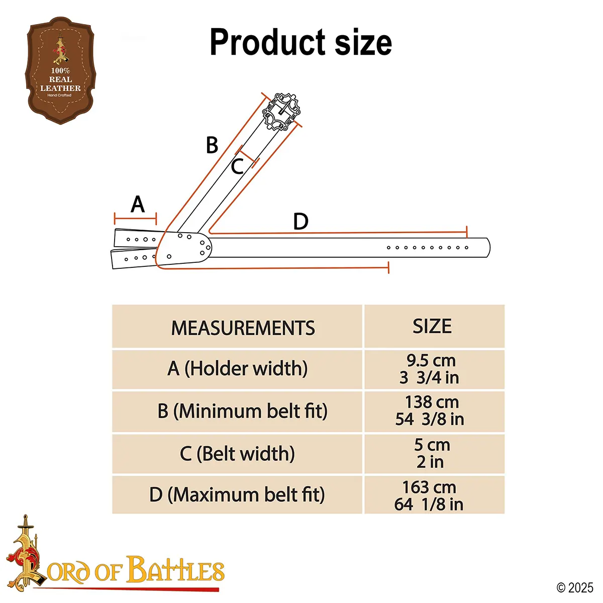 Note: Each baldric is individually handcrafted. Slight variations in leather tone, texture, or buckle finish are natural.