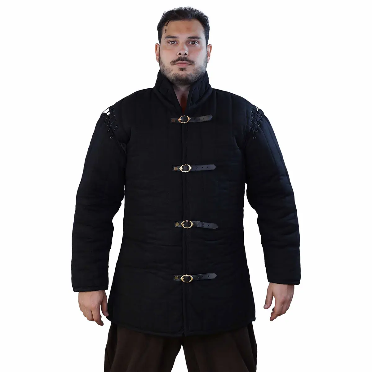 Three-Layer Padding With Removable Sleeves: The highlight of this gambeson armor is its fully detachable sleeves, giving you the flexibility to adapt to weather or movement needs. Wear it as a complete padded coat for maximum protection, or remove the sleeves to turn it into a functional sleeveless gambeson or gambeson vest. Secure cord-laced shoulders ensure the sleeves stay firmly attached, even during heavy action.