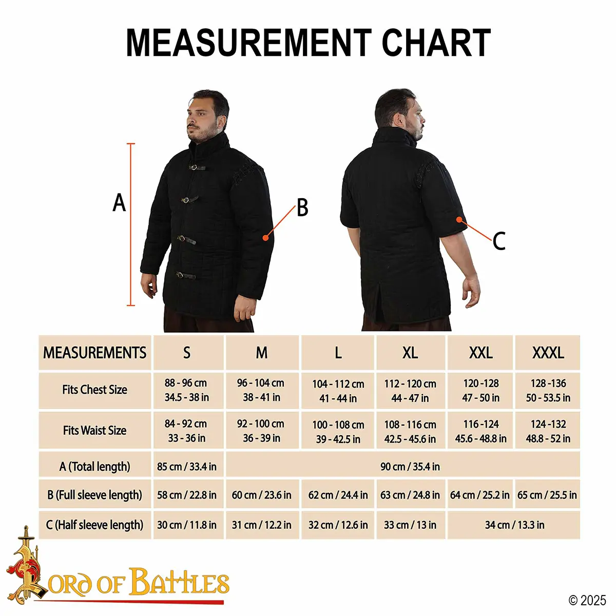 Split Back for Better Mobility: A practical split at the back allows full leg movement for walking, kneeling, running, or riding. This design makes the gambeson compatible with full armor sets, so that the coat doesn’t pull or restrict your steps.