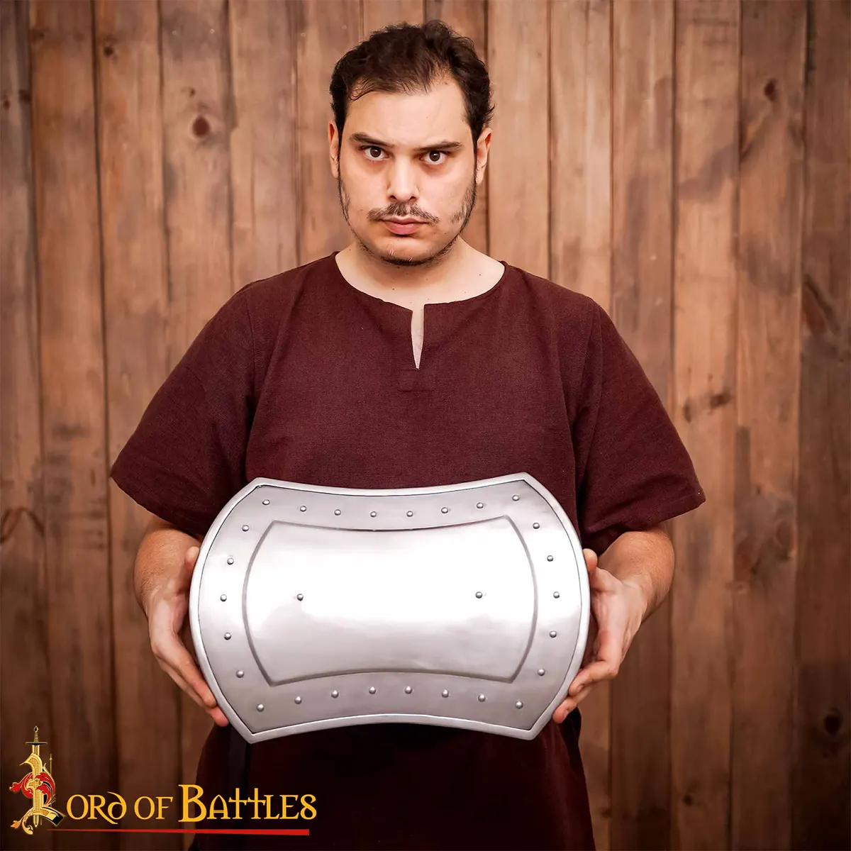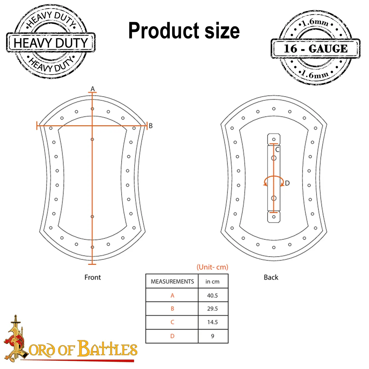 Made from durable 16 gauge mild steel, this buckler promises longevity and resilience. Its handcrafted nature means that each shield is uniquely tailored, showcasing the artisan’s skill. Measuring approximately 40.5 cm x 29.5 cm, it’s a practical choice for both defense and offense during simulated battles. Weighing in at a robust 1,690 grams, it’s light enough for extended use while still providing exceptional protection against incoming strikes.