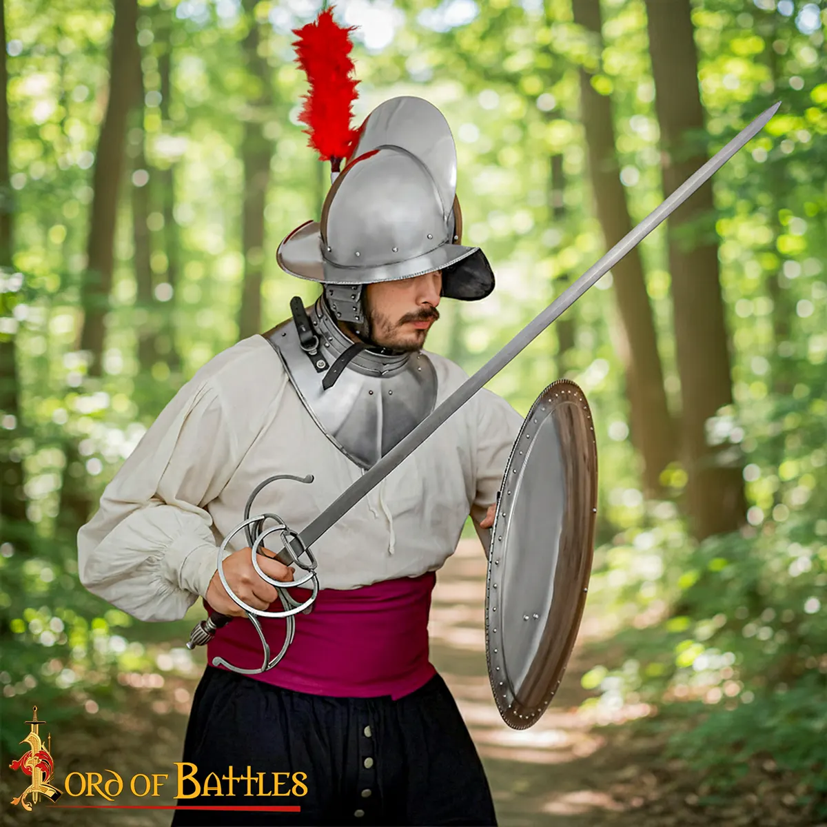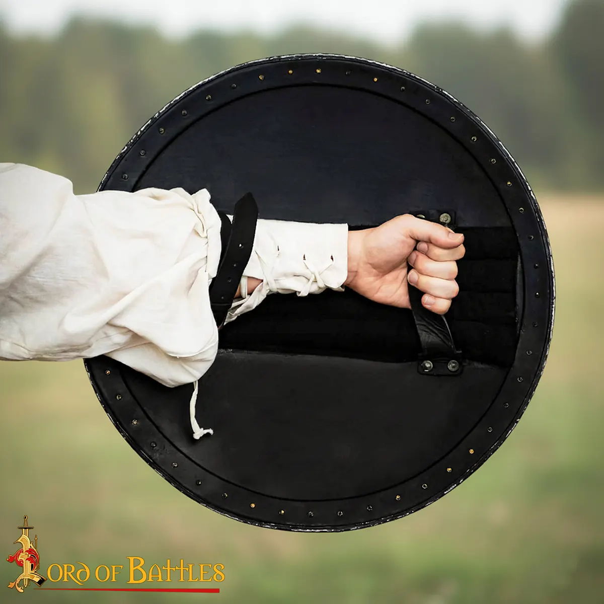 This Rodela shield is perfect for collectors, stage performers, and medieval enthusiasts who are looking for an elegant and functional circular shield.