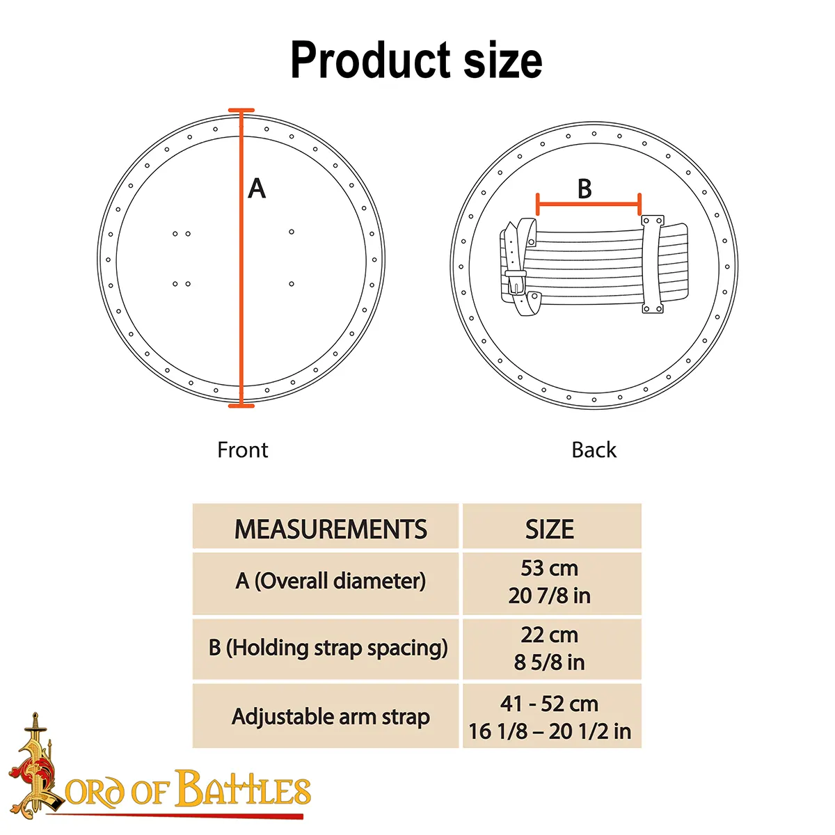 This round shield is light enough for swift use and sturdy enough for stage combat and live-action roleplay. The back includes reinforced leather straps, for a secure and comfortable grip during extended use whether you’re training or performing.