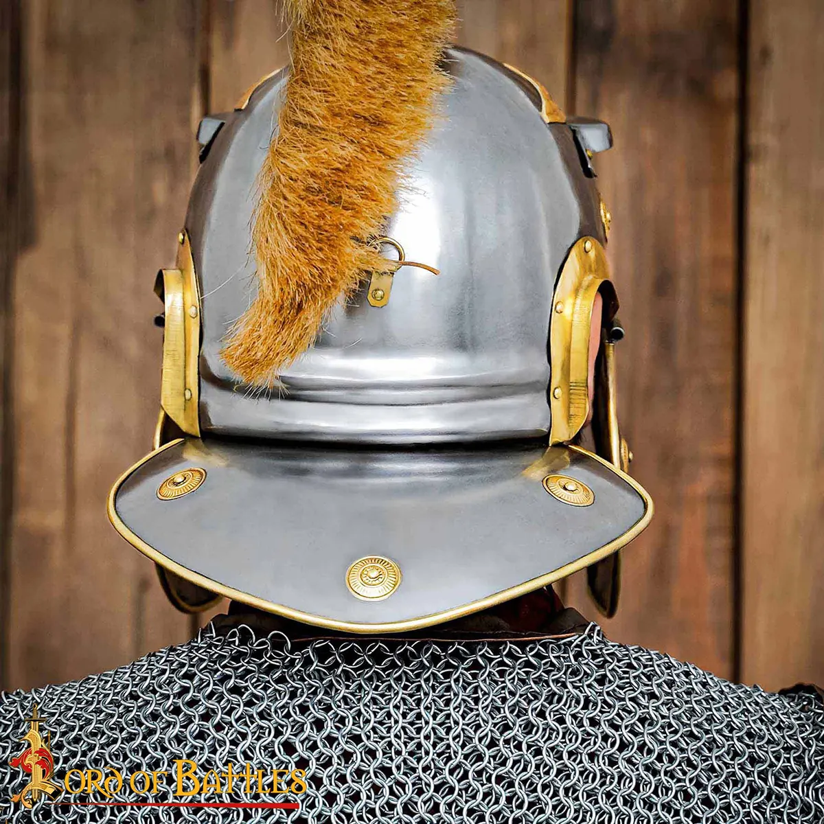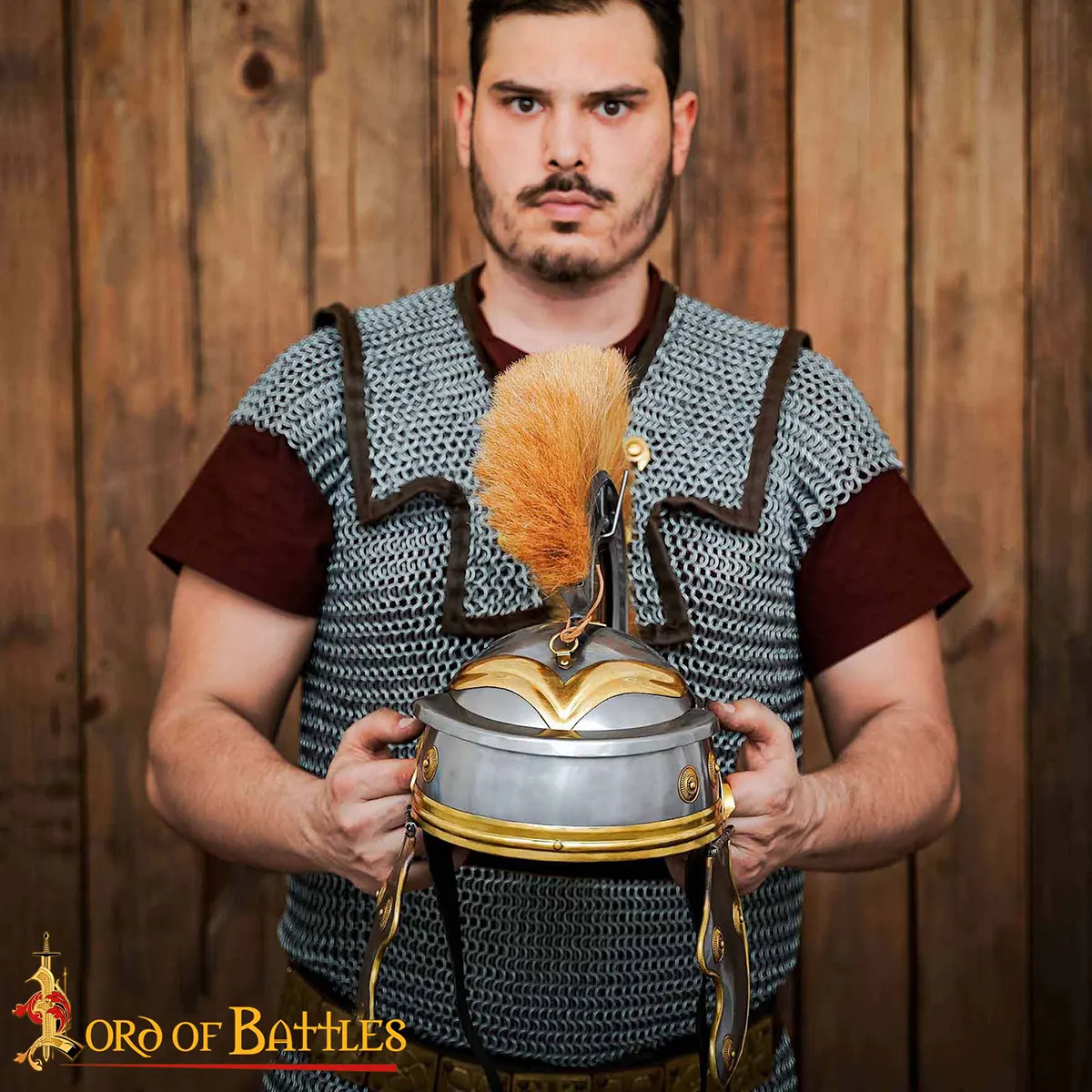 In summary, the Roman Gallic Legionary’s Decorative Steel Helmet is more than just a helmet; it is a symbol of ancient warrior spirit and craftsmanship that enhances any collection or ensemble. Don’t miss the chance to integrate this magnificent piece of history into your life, whether for decorative purposes or as a valued addition to your historical reenactment gear. Embrace your inner legionary, and let this stunning helmet bring a touch of the illustrious past into your present!