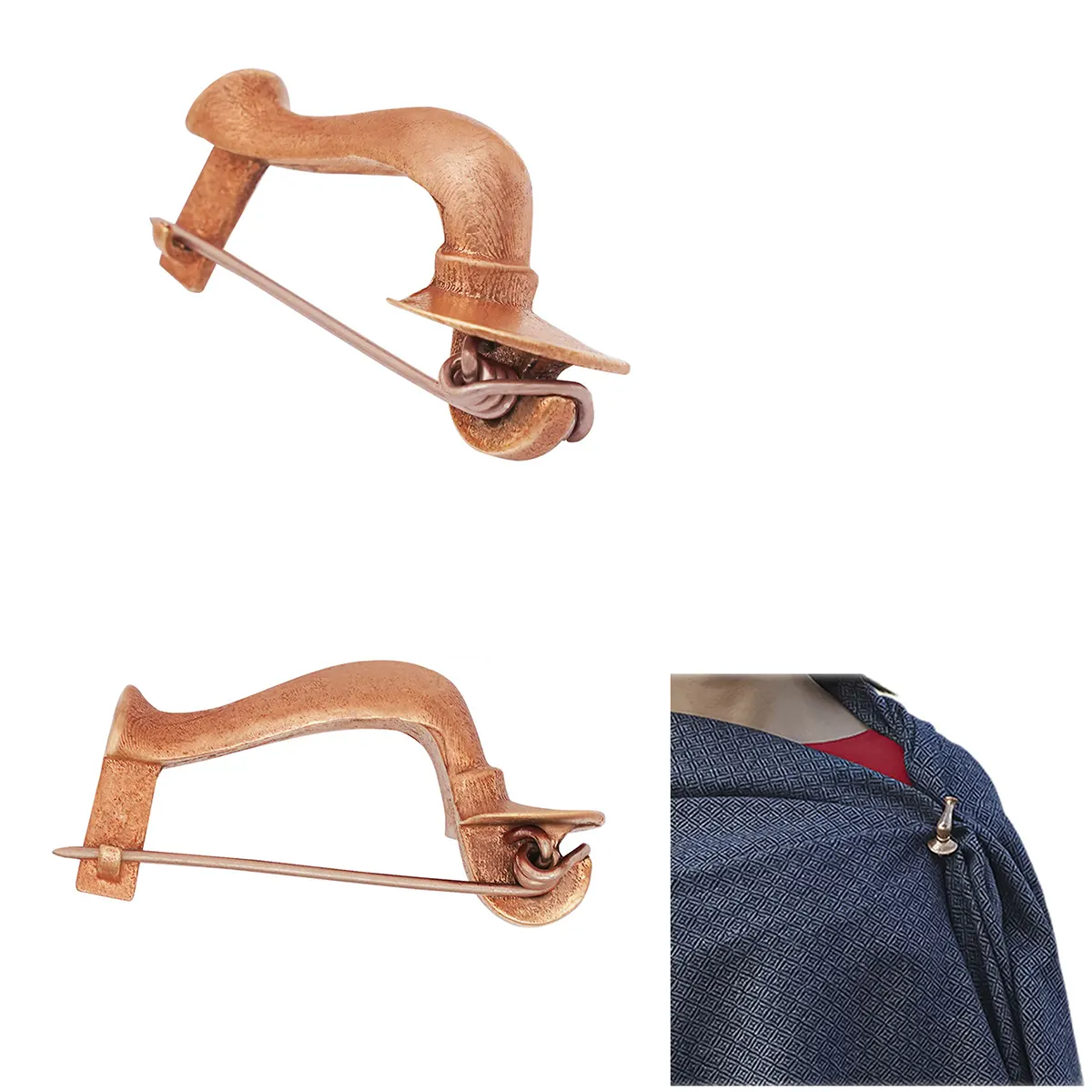 The brooch has a hand-wound spring and working pin, just like the originals. It is available in polished bronze or antique bronze finishes, and works perfectly as a fibula brooch, a functional brooch pin. This Roman fibula brooch is suitable for cloaks, shawls, tunics, museum displays etc.