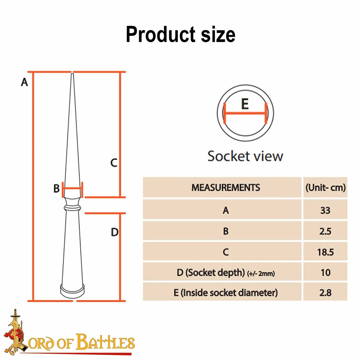 - Construction: Long tapering point with socket base