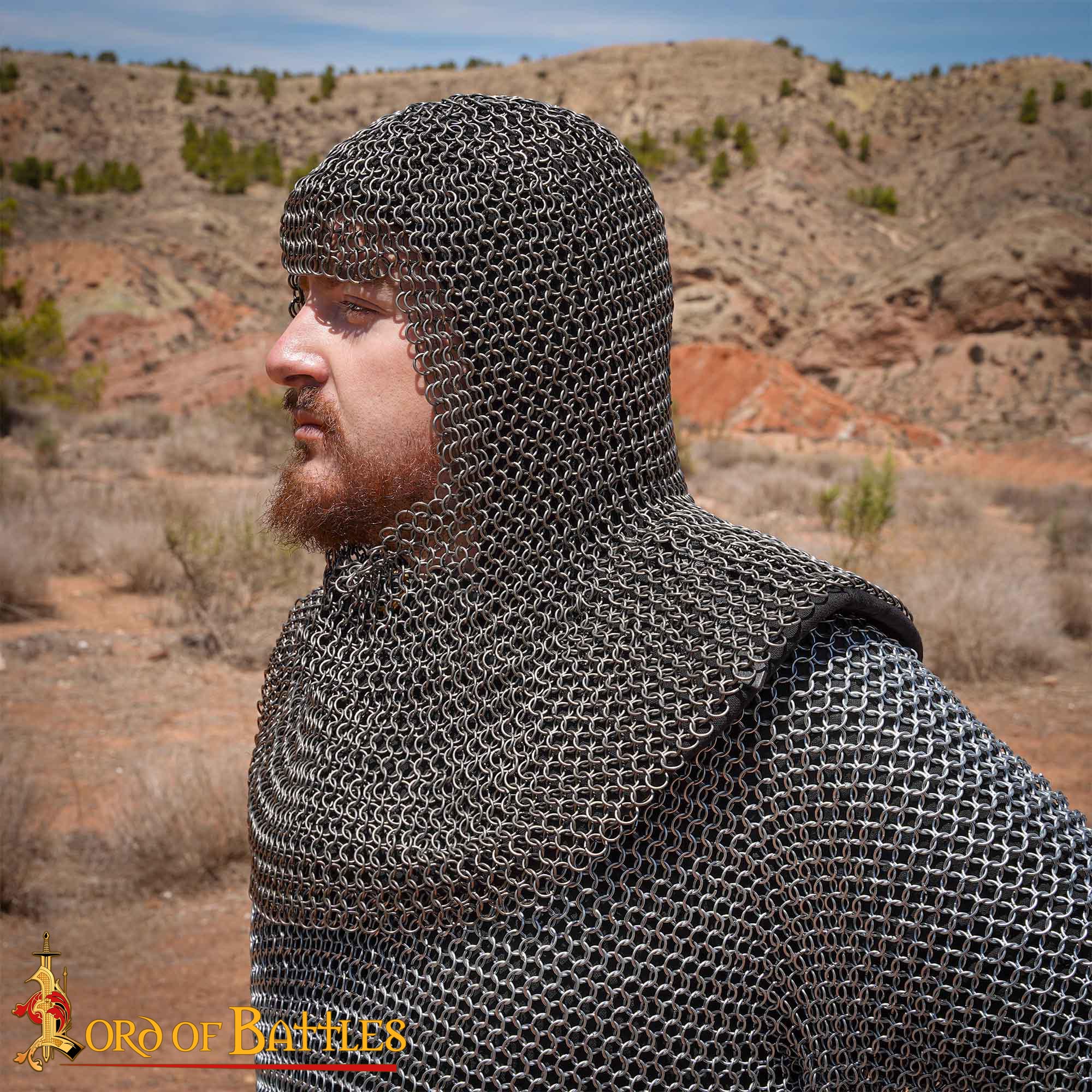 Round Ring Chainmail Coif, Butted, 9 mm 16 gauge, Spring Steel