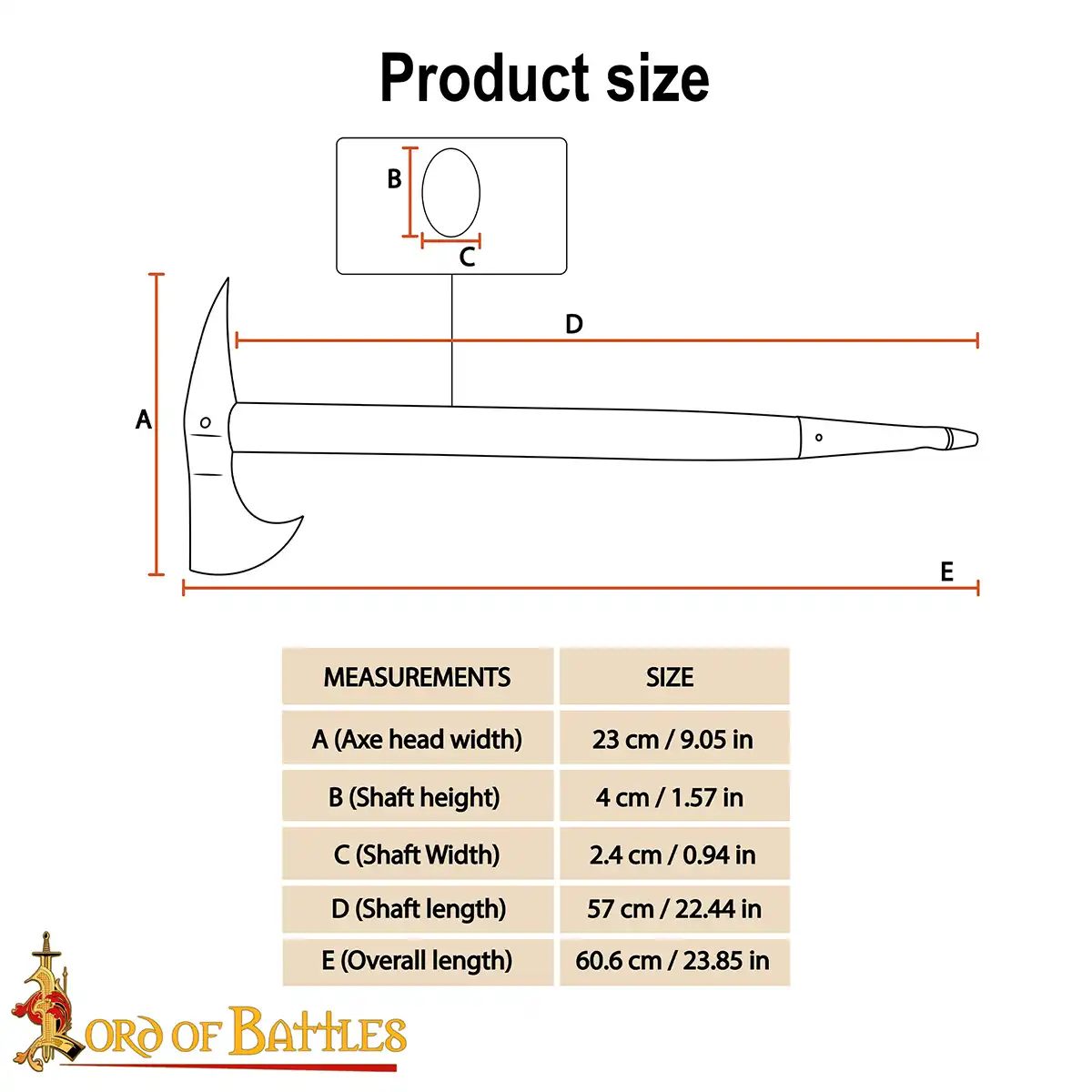 Axe Head Width: 23 cm (9.05 in)