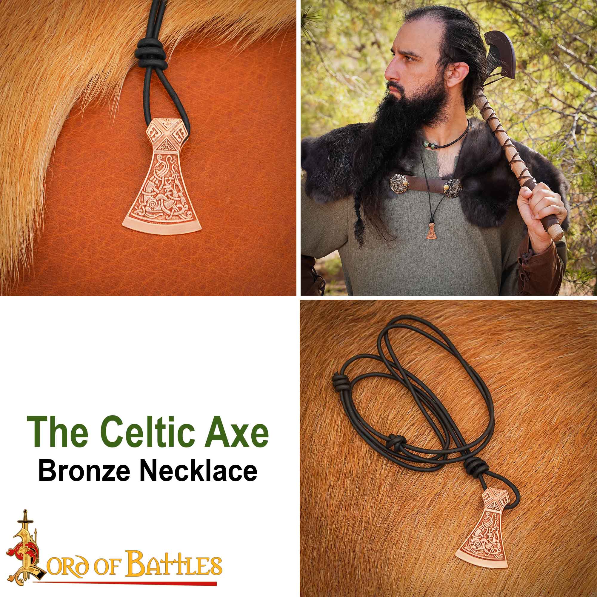 Channel the essence of Norse warriors with this bronze axe pendant—an emblem of valor forged in the spirit of the Viking Age. Shaped like a battle-tested axe head and etched with flowing knotwork, this amulet blends myth and might. In Norse belief, such symbols were more than art—they were powerful charms against misfortune and emblems of inner strength.
