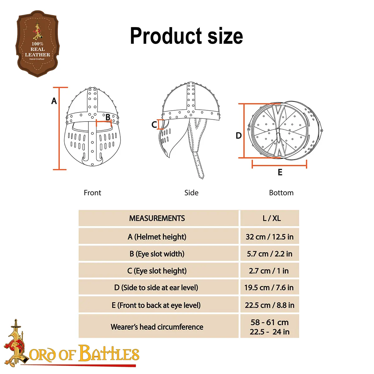 Each Spangenhelm Helmet is handmade using traditional forging and riveting techniques, so small variations in size, weight, and finish are natural.