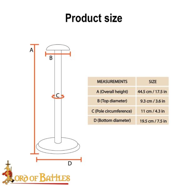 The broad round base ensures your helmet remains upright and stable, whether you’re displaying it on a shelf, in your living room, or as part of a historical costume ensemble. The domed top is shaped to mimic the human head, helping maintain the natural curvature of your helmet and preventing deformation over time.