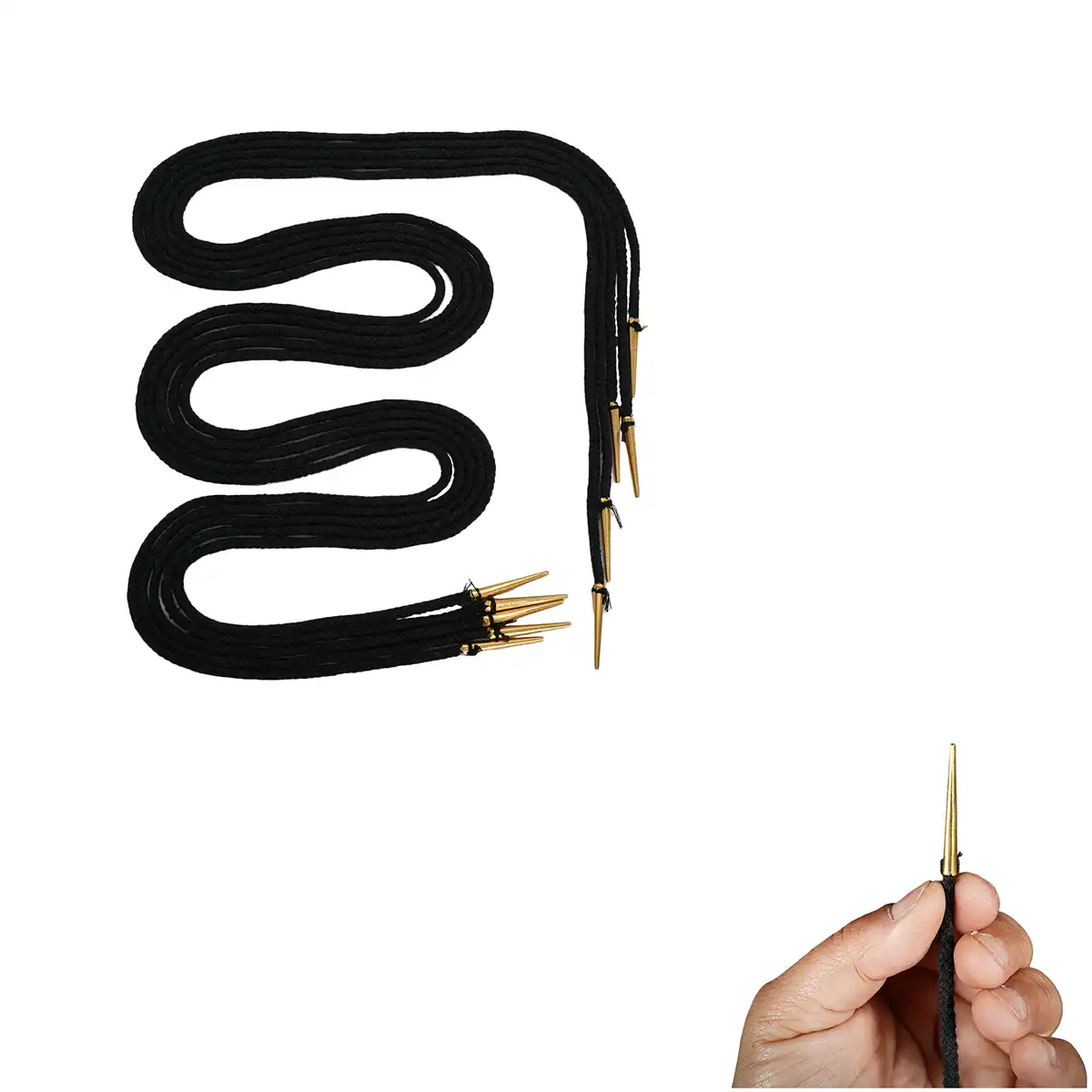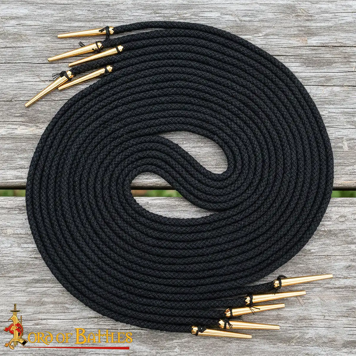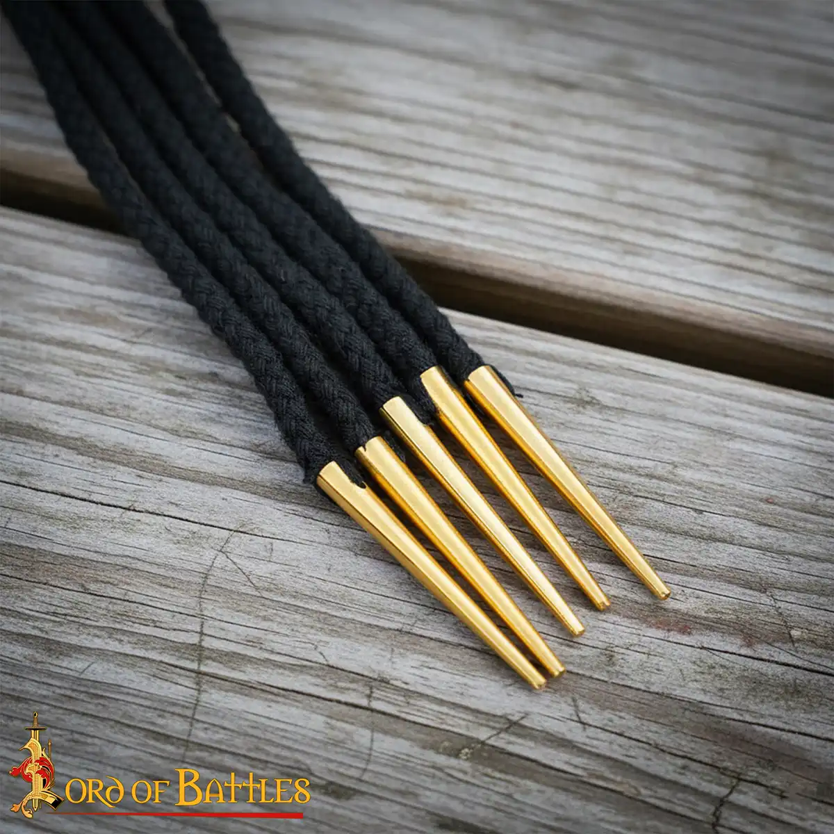 Bring authentic medieval detail to your clothing and gear with this set of long cotton laces tipped with solid brass aiglets. Each lace measures 150 cm, giving you plenty of length for wrapping, cross-lacing, or securing larger garments and footwear.