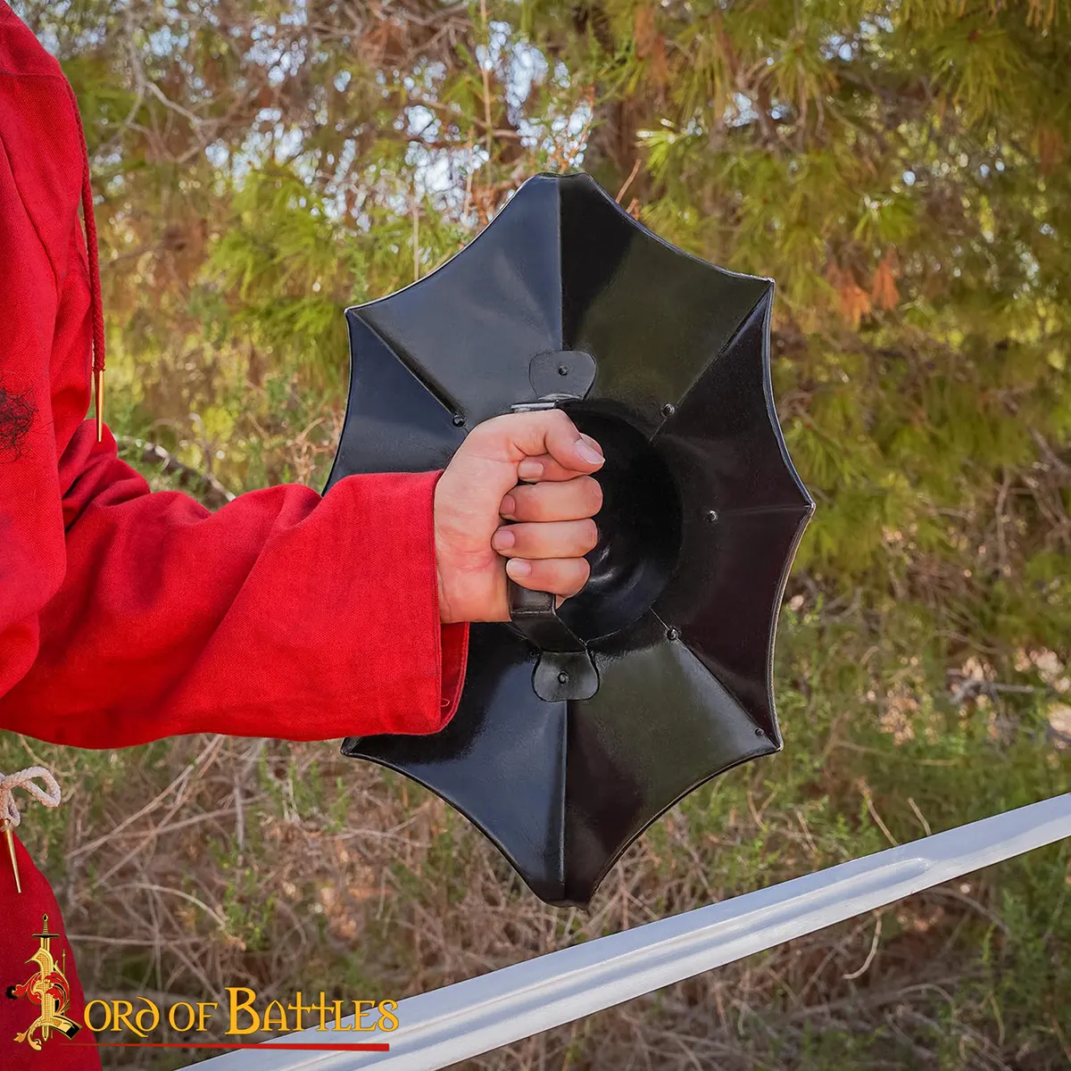 Made from 16-gauge tough steel: The Talhoffer Buckler is sturdy and lightweight at 1.6 kg, for swift and controlled defensive action. Its holly-leaf ridges strengthen the structure while helping deflect blows. The back of the buckler is painted to resist corrosion for long-term use during outdoor or training use.