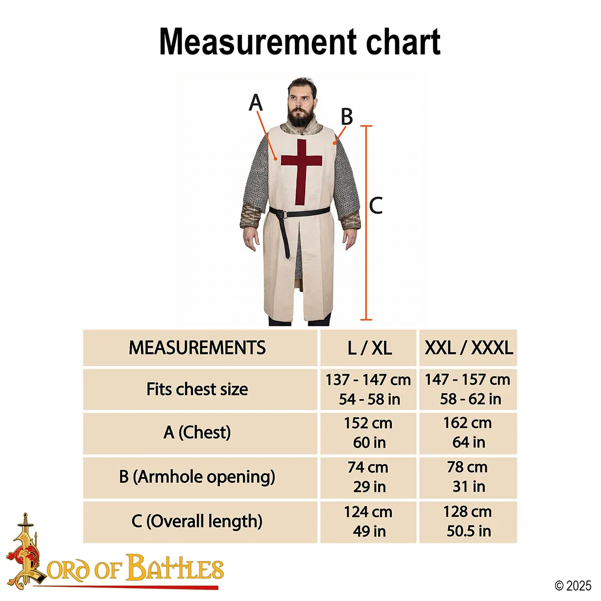 Whether worn over armour in reenactments, at LARP events, or displayed as part of a collection, this Templar Knight Tabard combines authentic medieval design with robust craftsmanship. For the most faithful look, wear it with a leather belt over chainmail
