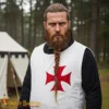Historically, the surcoat has both practical and symbolic purposes. Worn over chainmail or plate armor, it protected metal armor from direct sunlight and also gave a clear identifying look on the battlefield. The white fabric stood for purity and devotion, while the bold red cross represented the sacred vows taken by Templar warriors to defend their Holy Land. This easily recognizable design made the Templar Tunic a huge symbol for allies and a fearsome sight for enemies.