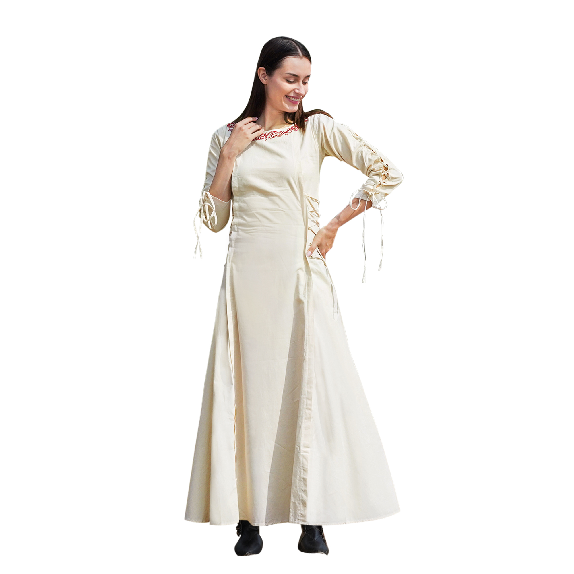 Furthermore, the elegant design and thoughtful construction make this dress suitable for various occasions. Picture yourself at a historical reenactment, where you can fully immerse yourself in the charm of centuries gone by, or at a casual garden party, catching the eyes of passersby with your graceful appearance. The Adventuring Princess Medieval Cotton Dress is not just clothing; it’s an invitation to indulge in a story much larger than ourselves.