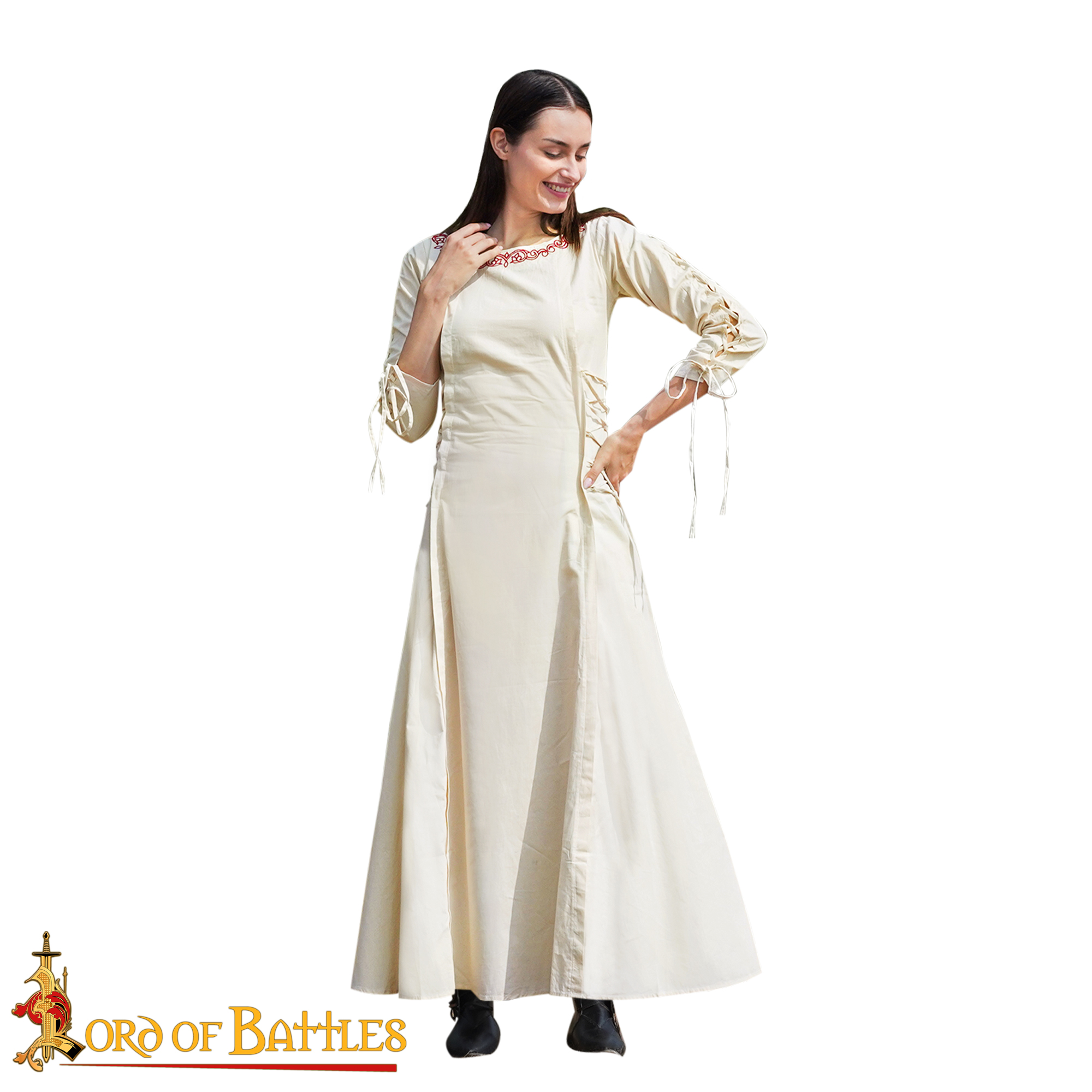 Available in FIVE SIZES, our dress is made to flatter a variety of body types, allowing every adventurer to feel like a true princess. The adjustable lacing on both sides of the dress is a standout feature—this whimsical touch not only enhances the medieval charm but also allows for a customizable fit. Adjust the lacing to create a more form-fitting silhouette for formal gatherings or loosen it up a bit for a more relaxed, bohemian style perfect for wandering through meadows or hosting impressive feasts with friends. Versatility is key, and this dress beautifully adapts to the occasion.