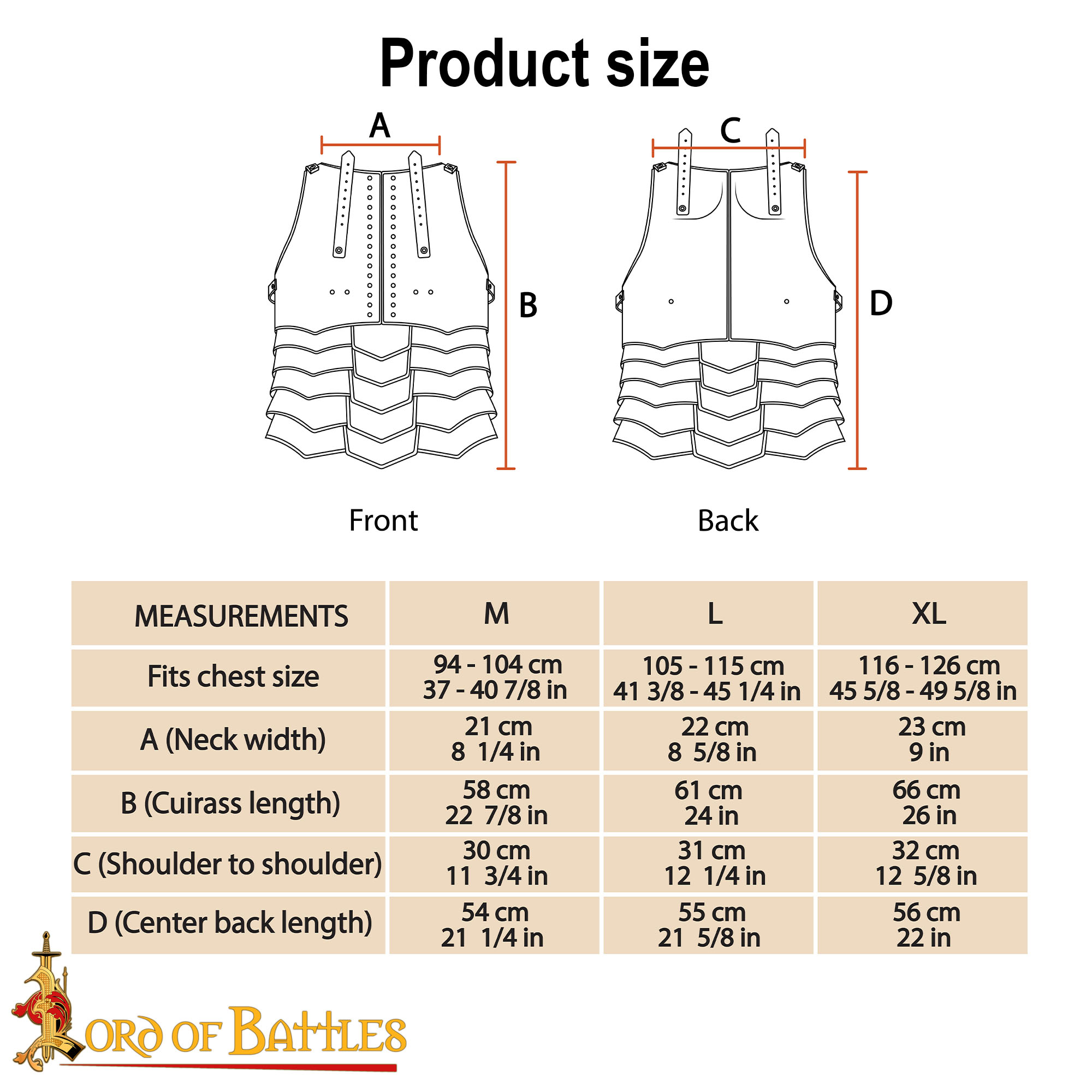 Handcrafted from 18-gauge mild steel, this cuirass offers solid defense without excess weight, around 7 kg (depending on size). Its sturdy construction ensures both comfort and protection, letting you move freely whether you’re charging into battle, performing on stage, or standing as a symbol of valor at reenactments.