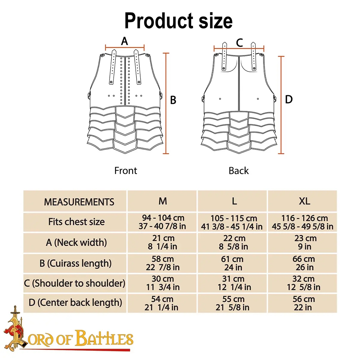 Listing includes cuirass only, other armor parts/accessories shown are for demonstration.