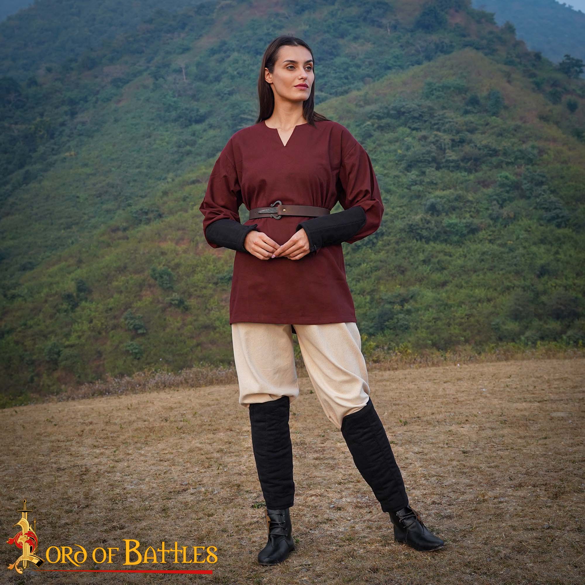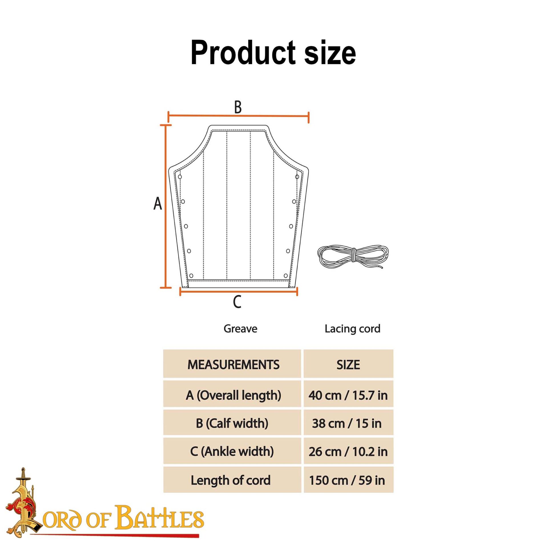 The triple-layer padding not only shields the shins but also ensures breathability and flexibility, making them practical for LARP, SCA, stage performance, or medieval training. Reinforced stitching and metal eyelets increase durability, while the soft cotton lining ensures comfort for long hours of use.