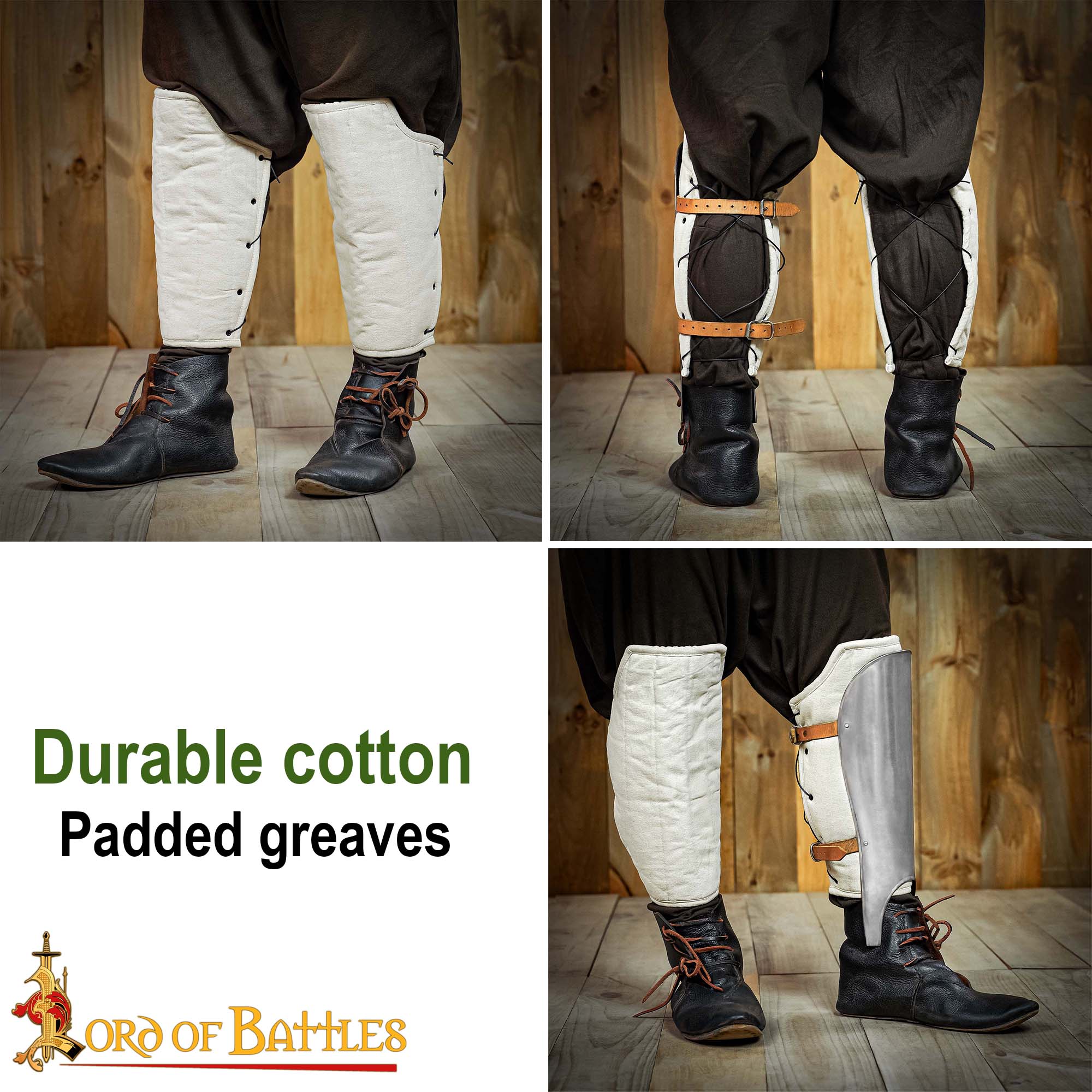 Medieval Padded Cotton Greaves – Three Layers with Multi Fiber Wadding