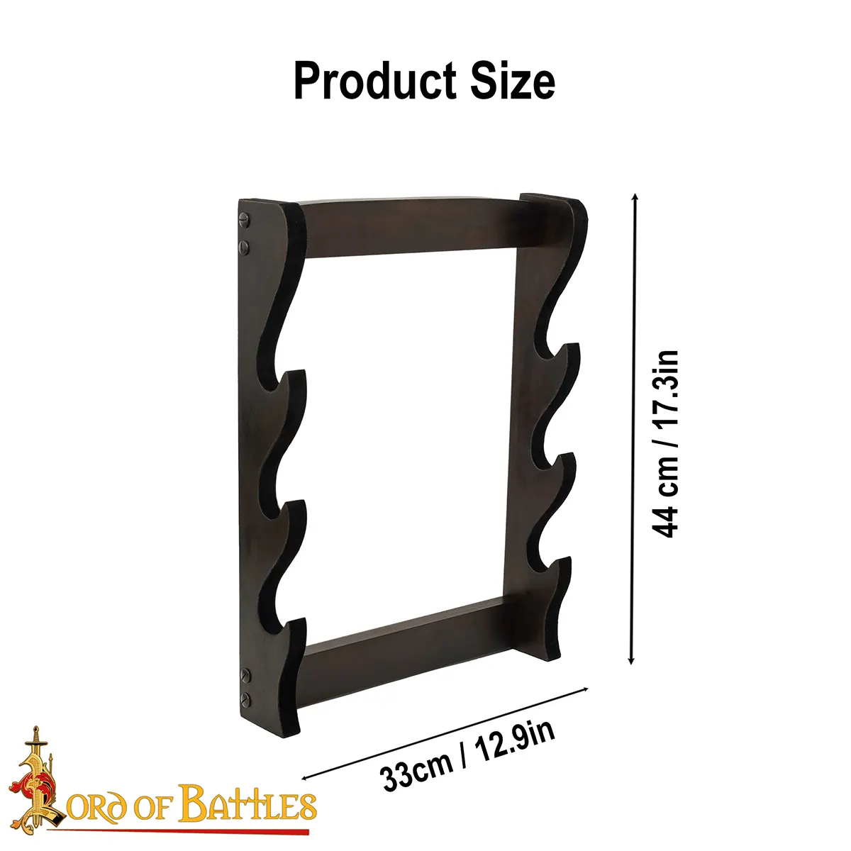 Immerse yourself in the world of chivalry and heroism with our Three Tier Axe Stand, meticulously handcrafted from genuine hardwood. As you prepare for battle—or simply reflect on the tales of valor and bravery—this exquisite stand offers a dignified display for your most prized weapons. Measuring 44×33 cm, it is perfectly sized to showcase your collection of swords and axes, ensuring they are not only stored beautifully but also easily accessible whenever adventure calls.