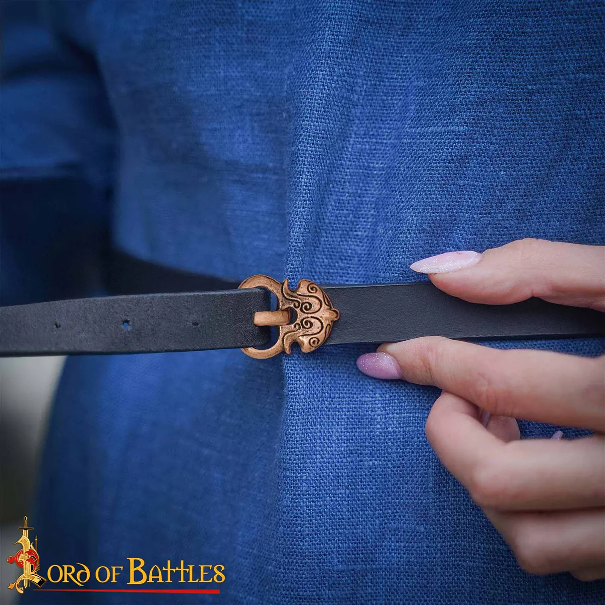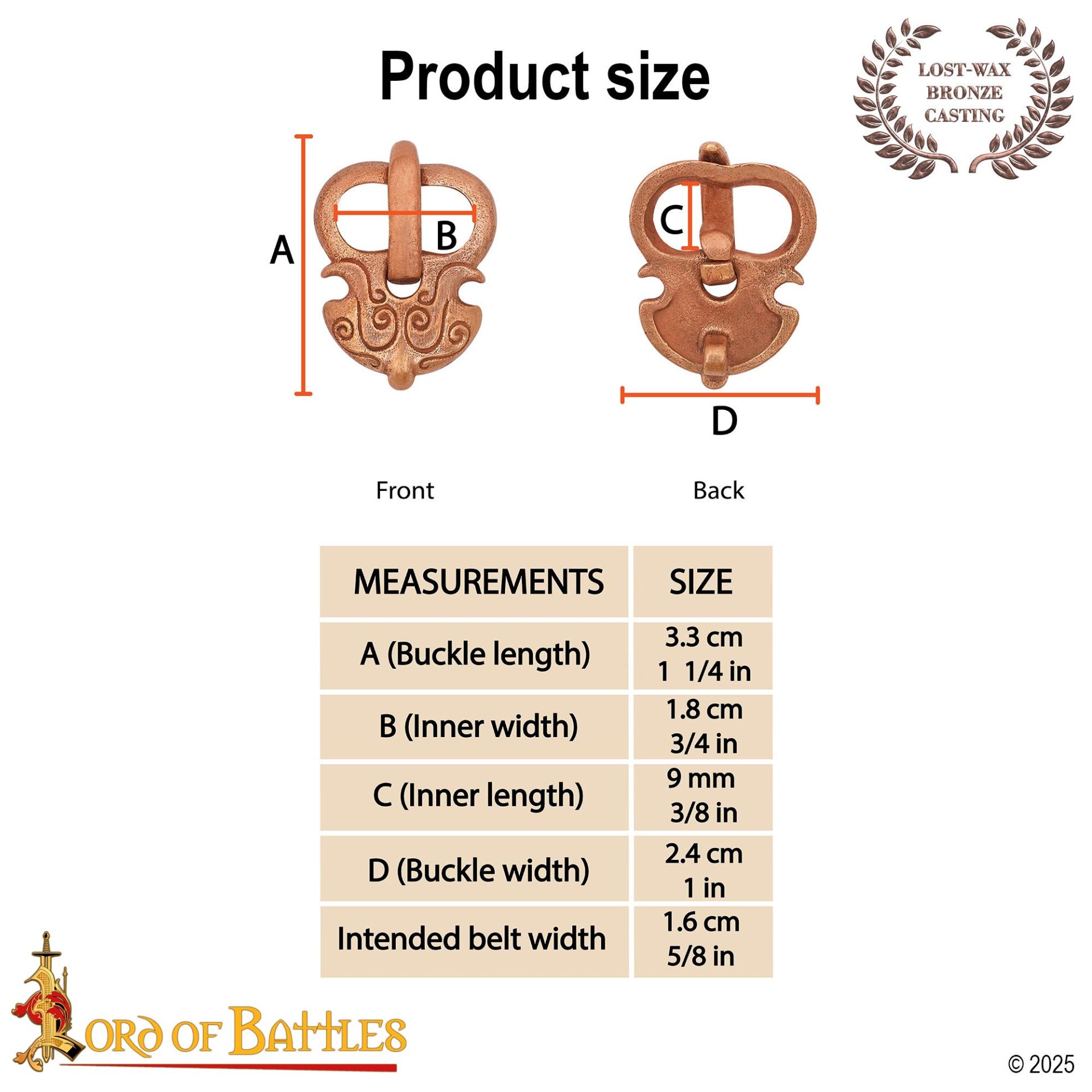 The swirling motifs are inspired by genuine Viking Age art styles, echoing the ornamentation found in archaeological belt fittings. The arched tongue provides secure fastening for narrow to medium belts, making them ideal for historical belts, pouches, or tunic closures. Their robust design ensures that the Buckle remains both decorative and practical, just as they did over a thousand years ago.