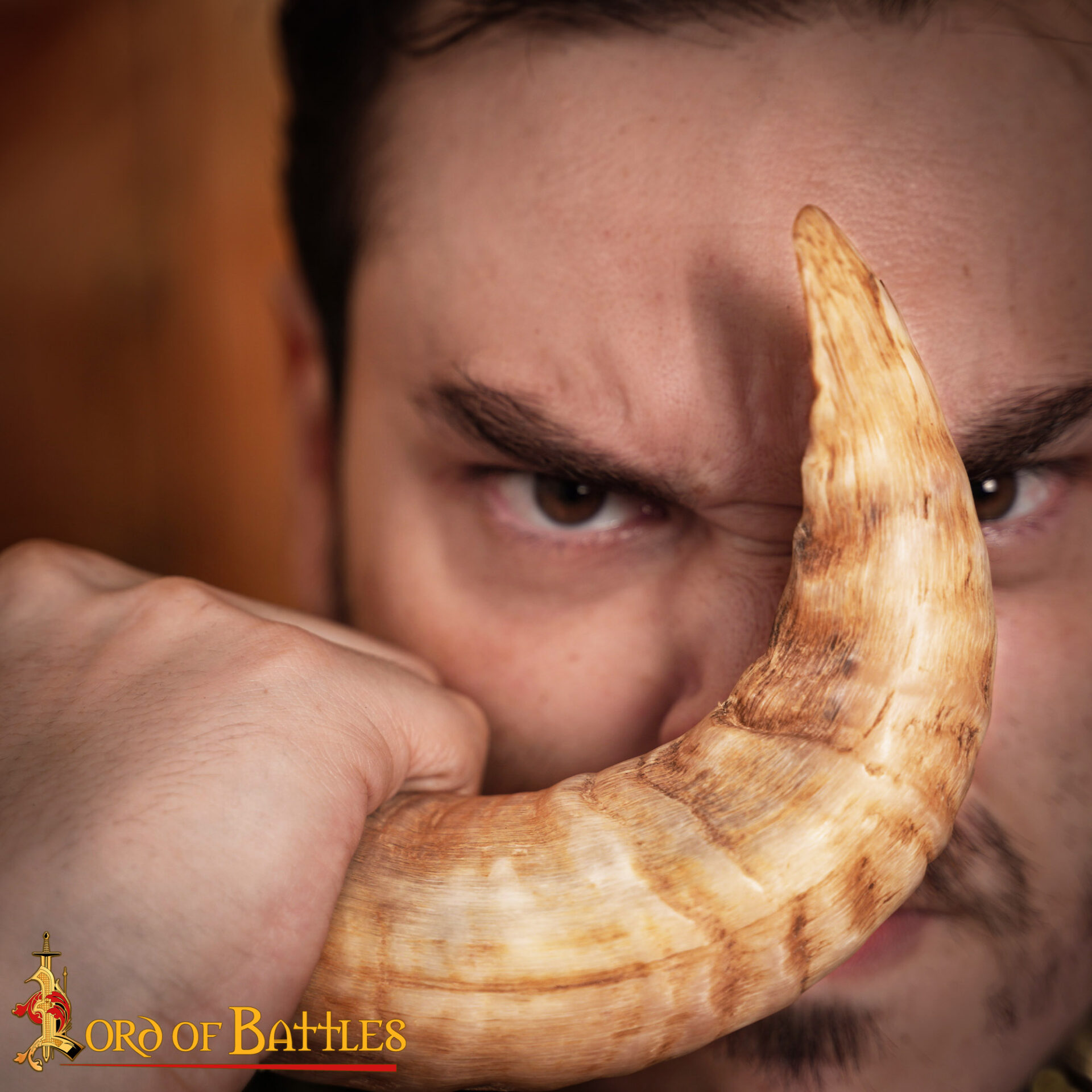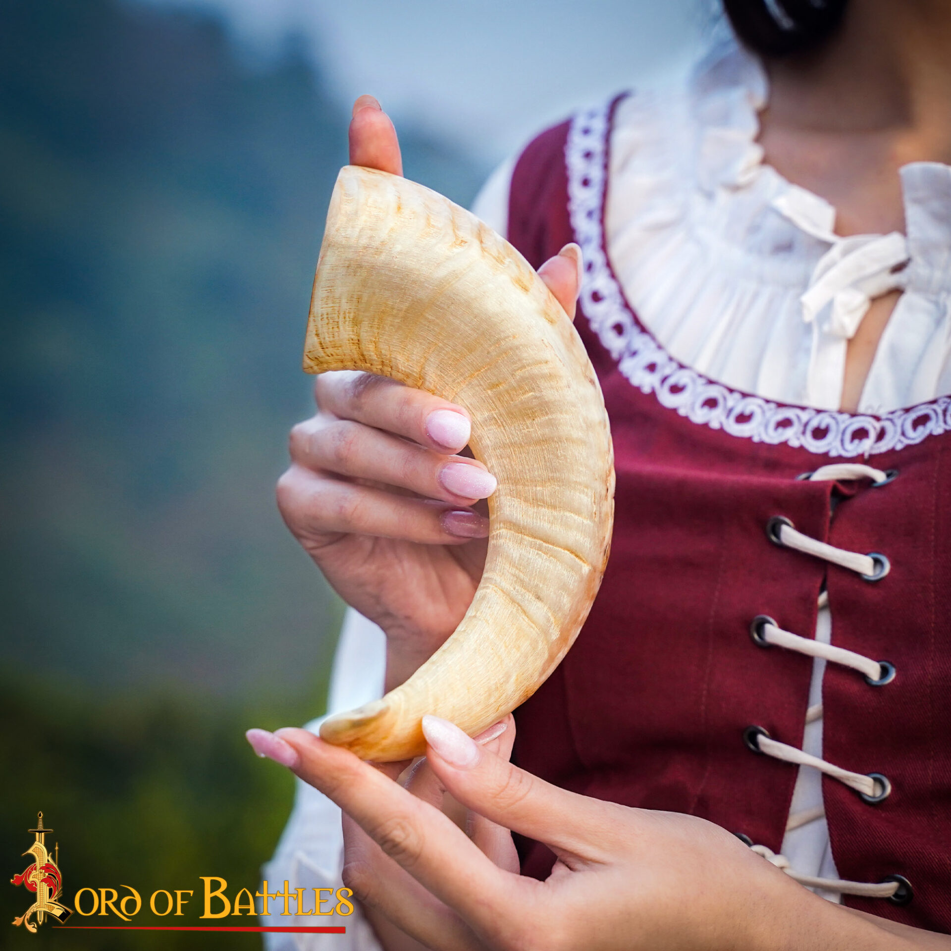 Your vessel arrives in a cotton canvas bag that protects it between uses and makes it easy to give as a thoughtful gift. Whether displayed on a shelf, incorporated into costume settings, or enjoyed during themed gatherings, this horn cup is a beautiful celebration of craftsmanship and heritage.