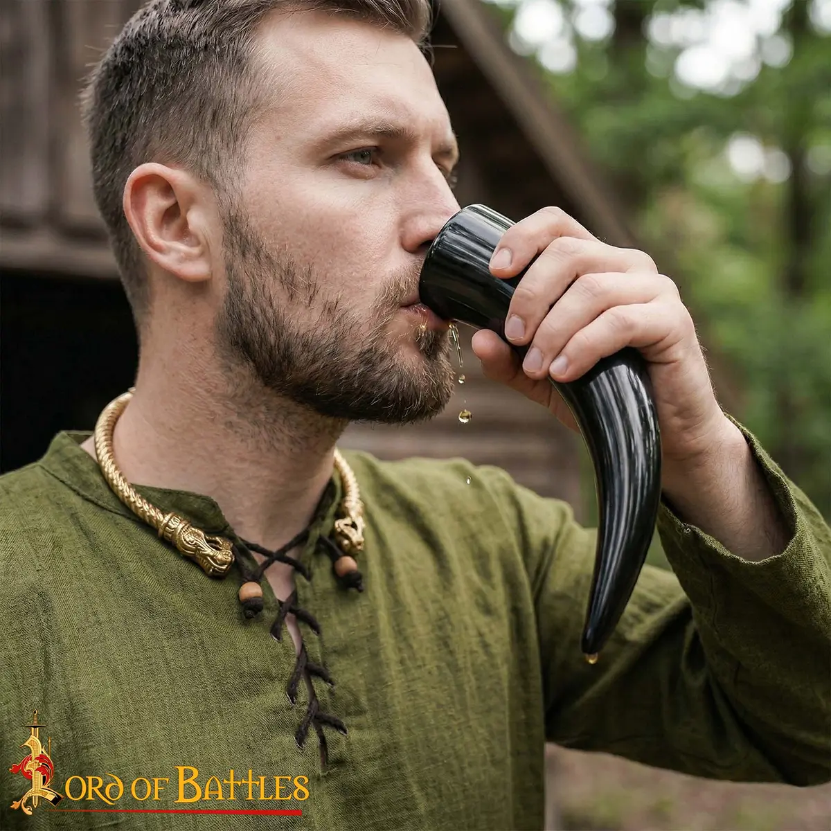 As a natural product, variations in size and color may occur, adding to its allure and authenticity. These characteristics not only embody the organic process from which it is made but also ensure that your horn holds a special place among your cherished items. Keep in mind that with time, natural materials may experience a little wear, which can manifest as cracks. However, this is part of the charm, reminding you of the genuine origins of your drinking horn.