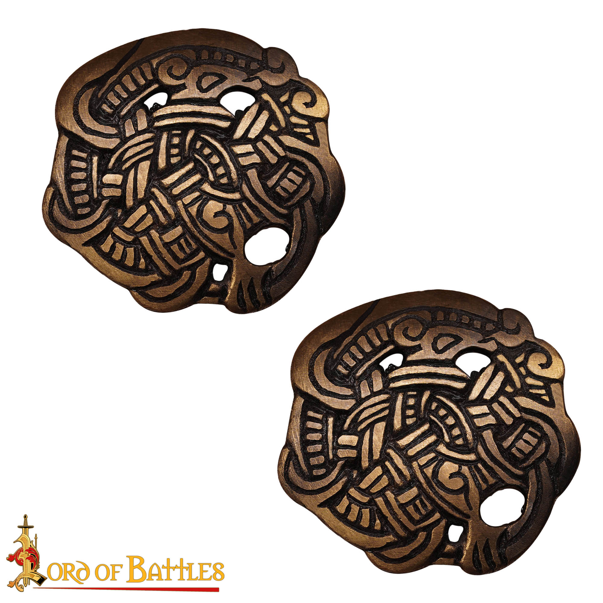 Invest in your passion for history and style with this set of two unique Viking Greiftier Antique Brass Brooches. Not only do they serve a functional purpose, but they also invite you to tell your own story, share your love for the Viking era, and inspire discussions when worn. Embrace the heritage, reflect your character, and let each piece transport you to the age of legends every time you wear them!