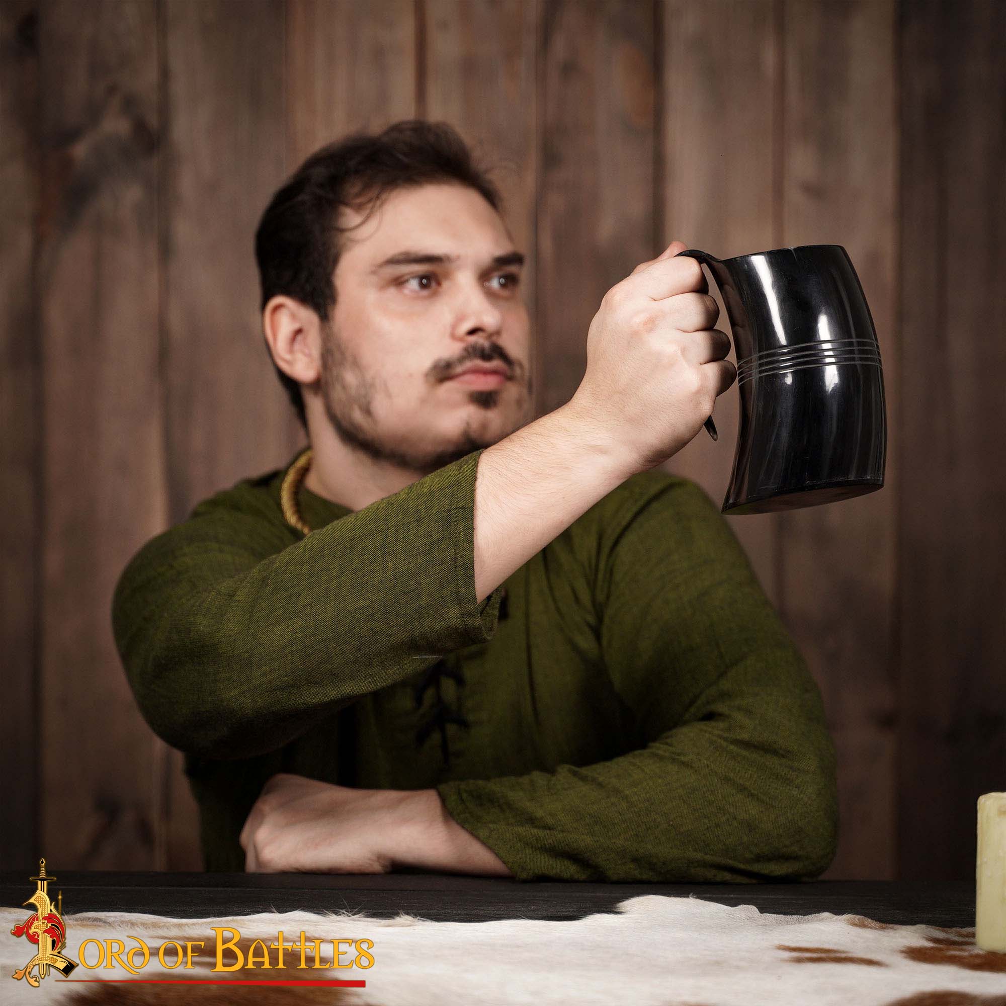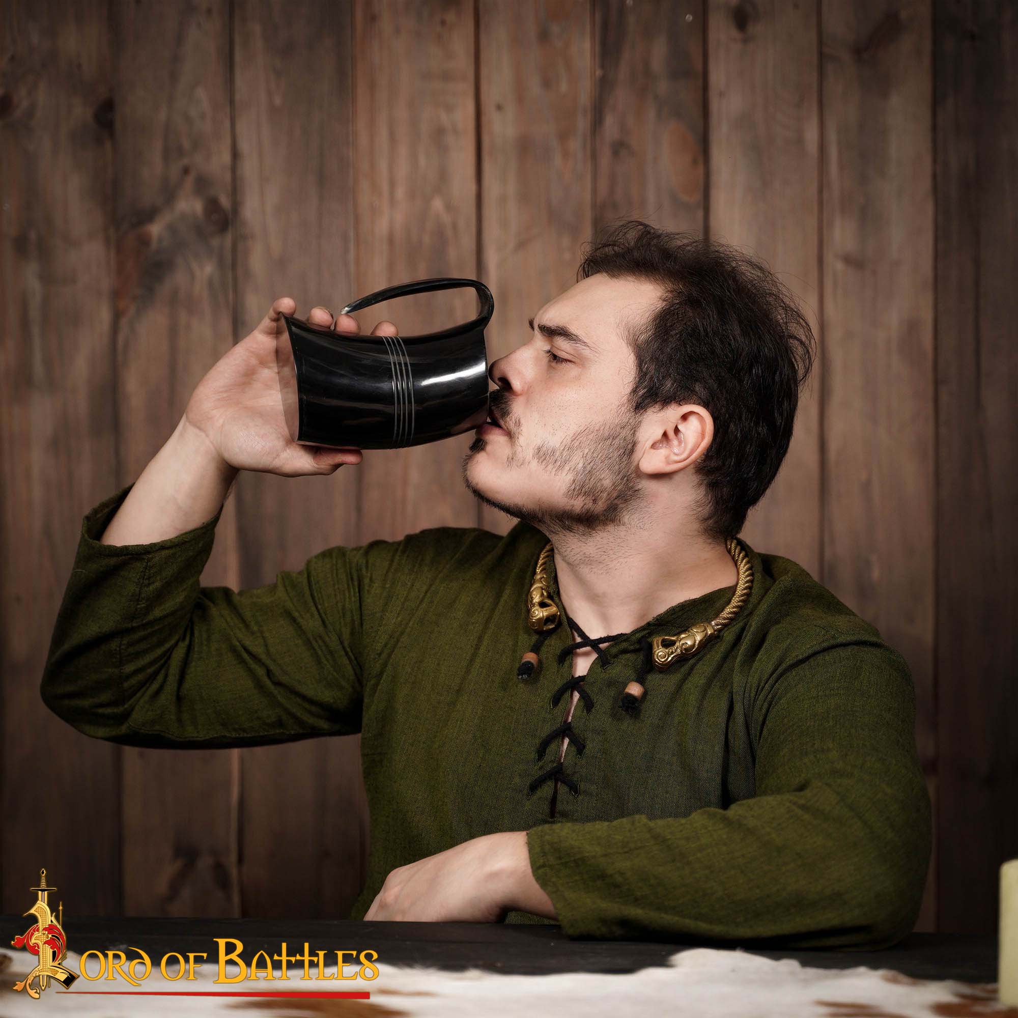 Step into a realm of historical splendour with our Medieval Viking Horn Tankard, a masterful creation designed for connoisseurs of authentic craftsmanship and those who cherish a touch of the past. Our Medieval Viking Horn Tankard is handcrafted from ethically sourced Ox horn, evoking the spirit of the Viking age and transforming every sip into a ritualistic celebration, whether you’re hosting a themed party or enjoying your favorite beverage in the comfort of your home.