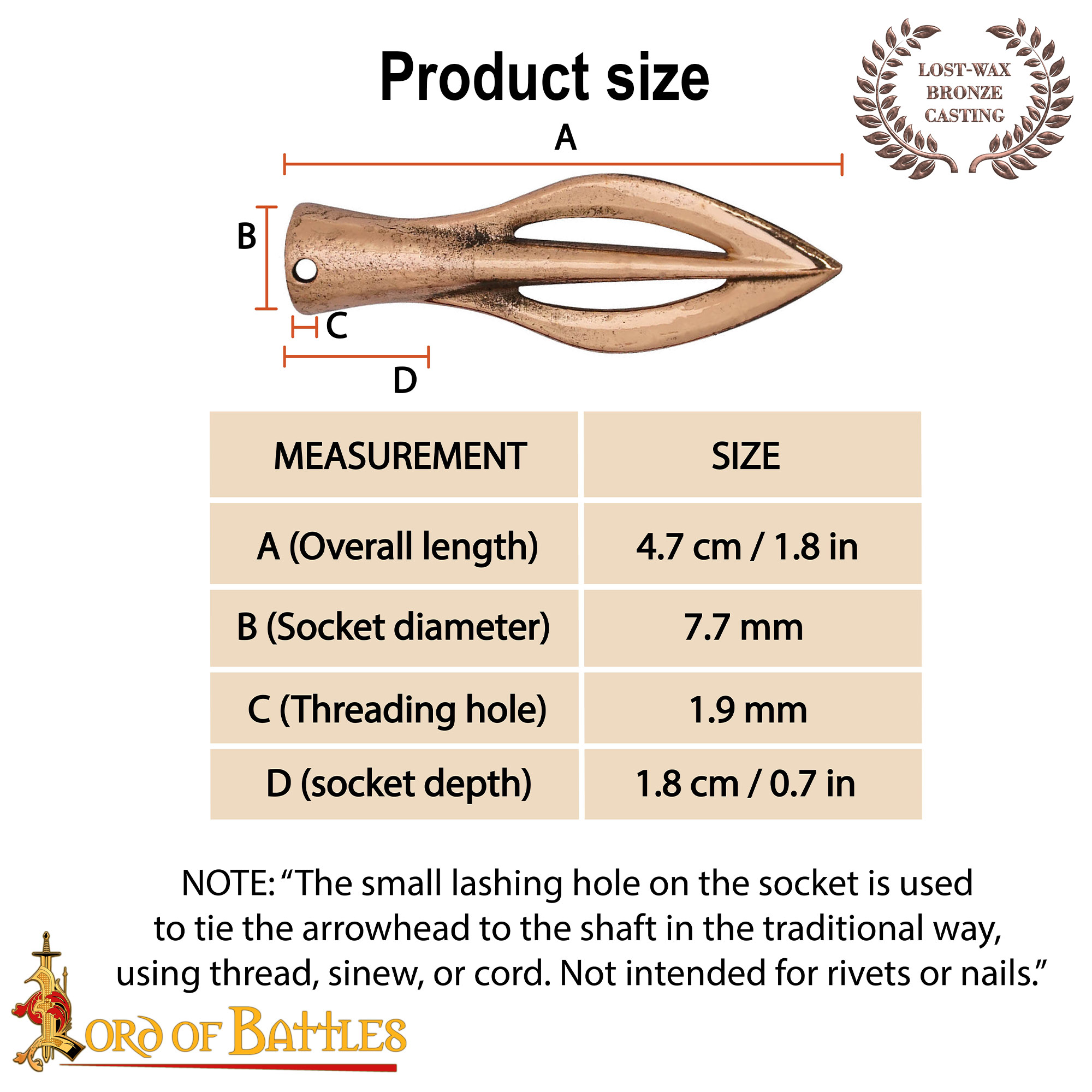 Each arrowhead is individually made using the same lost-wax casting technique known in the Roman era. This ensures authentic form and detail, but also means slight differences in color, finish, and texture are normal.
