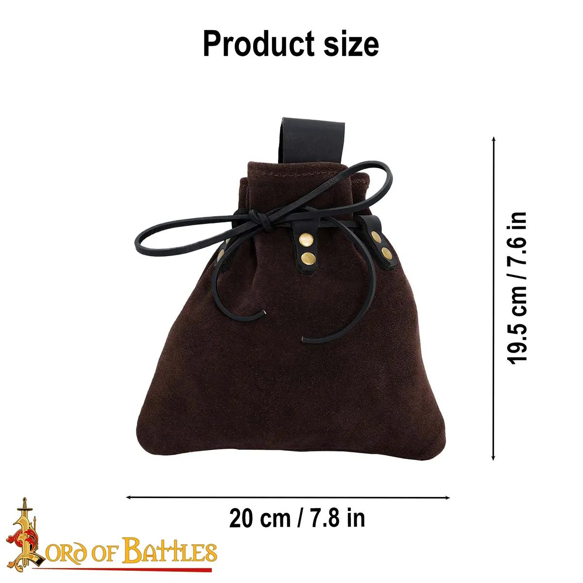 Absolutely delighted with my recent purchase of the Medieval Drawstring Belt Pouch! From the moment it arrived, I was impressed with the speedy shipping; it reached me within just two days. The packaging was impeccable, ensuring that the pouch was unscathed during transit. As I opened the box, the rich aroma of the genuine suede leather immediately filled the air, which added a touch of authenticity to the experience.