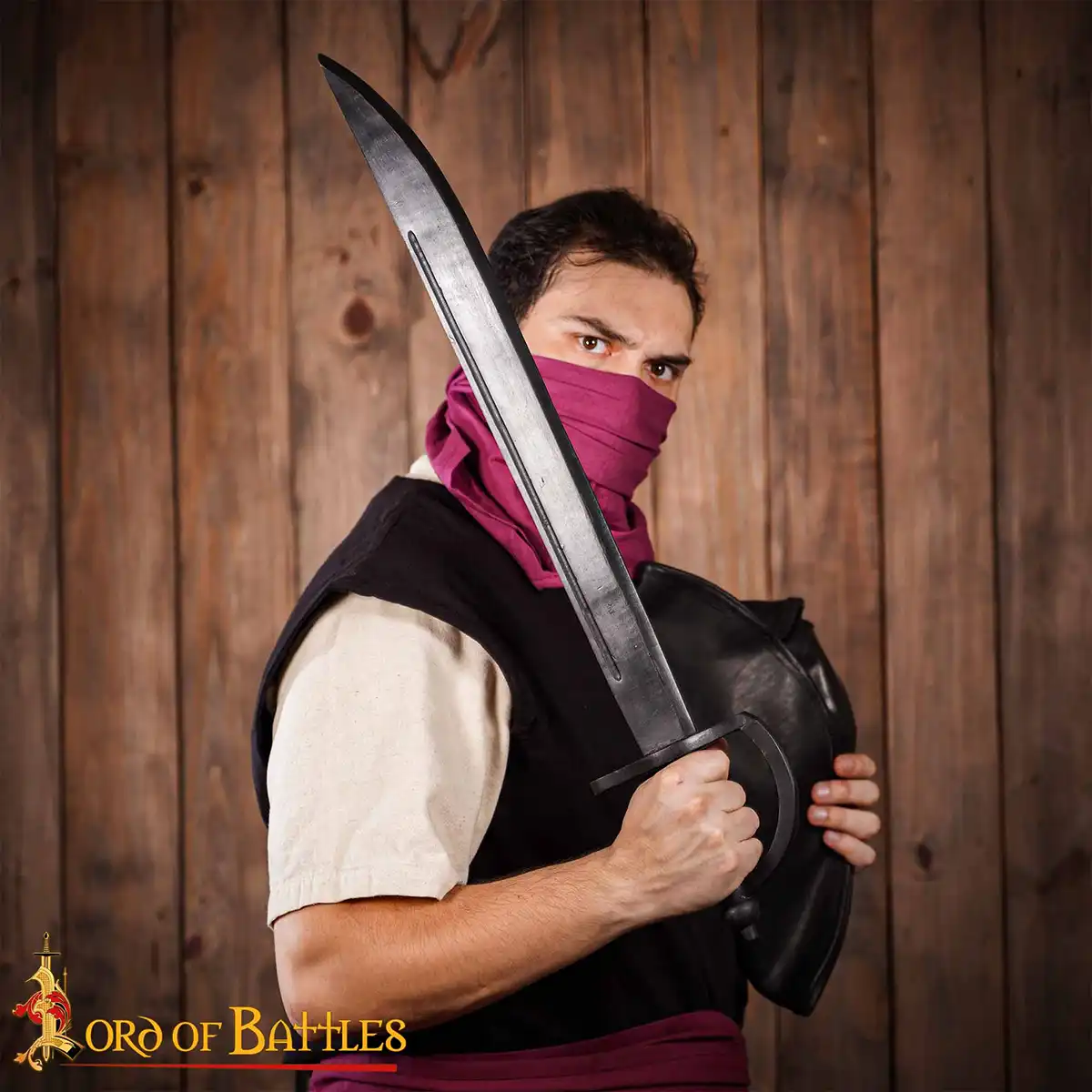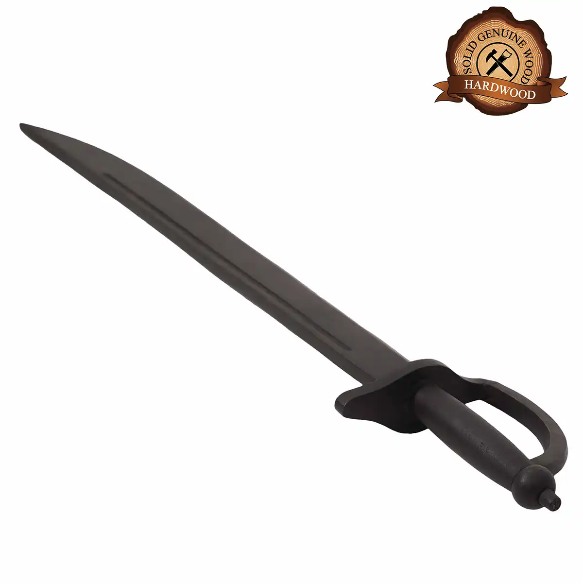 Experience the Golden Age of Piracy with this Wooden Pirate Cutlass Sword, a safe yet striking tribute to the blades once carried by sailors, buccaneers, and privateers. Expertly carved from durable steamed beech wood, it has a curved blade, a bold matte black finish, and a historically inspired D-shaped knuckle guard for a strong, authentic grip.
