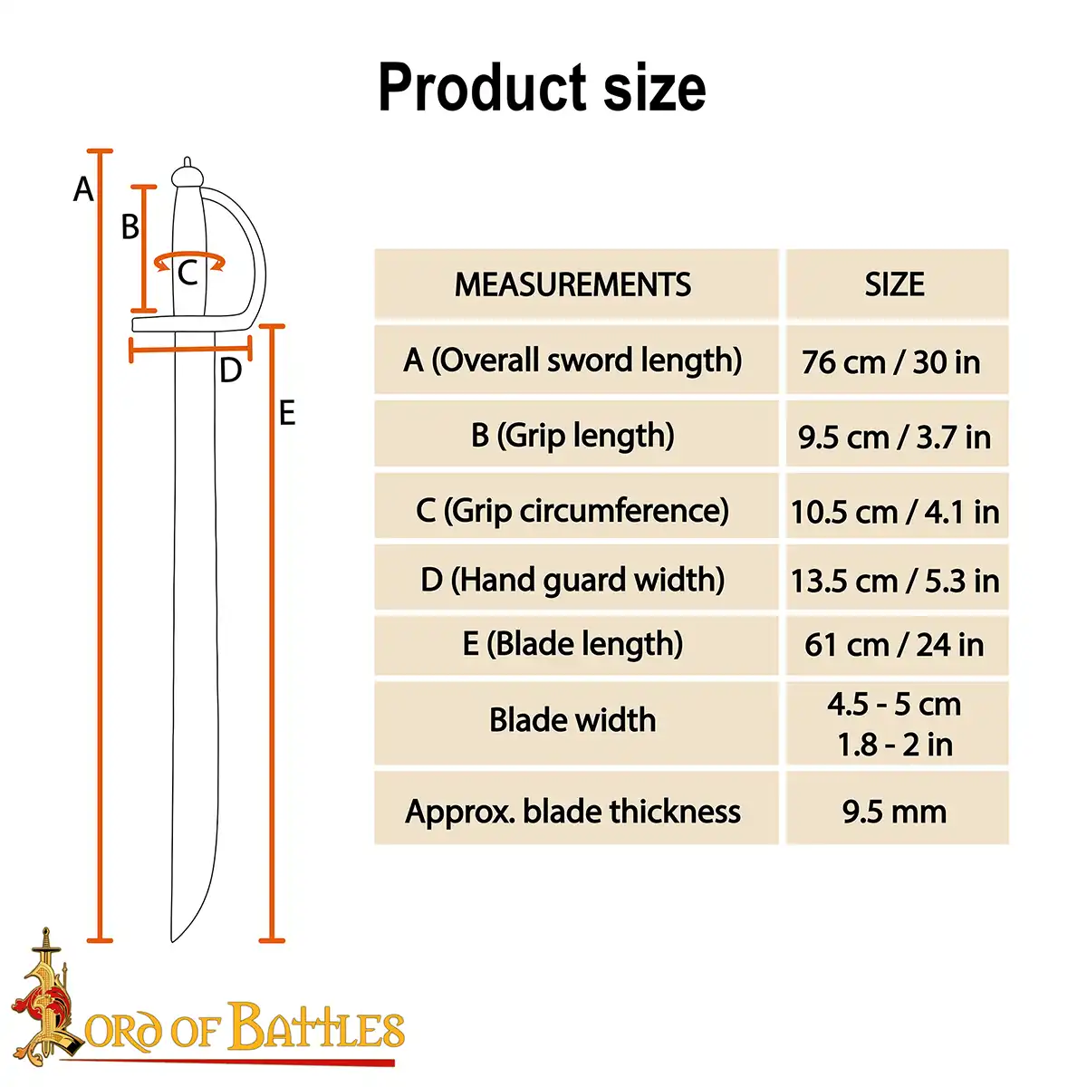 • Grip: D-shaped knuckle guard with rounded pommel for secure, authentic hold