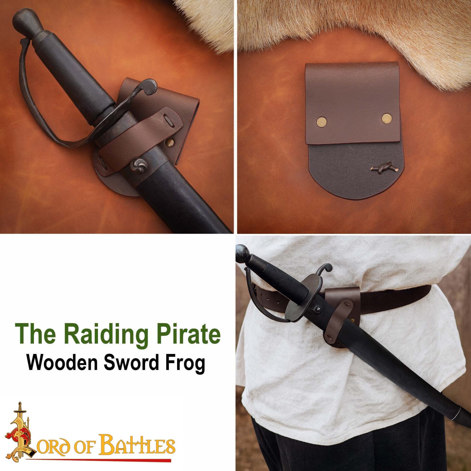 Elevate your sword-holding game with our exquisite Handcrafted Genuine Leather Frog, specifically designed for your cherished wooden swords. This meticulously crafted piece is not just a functional accessory; it embodies the artistry and dedication of skilled craftsmanship, perfect for enthusiasts of LARPing, historical reenactments, or pirate-themed events.